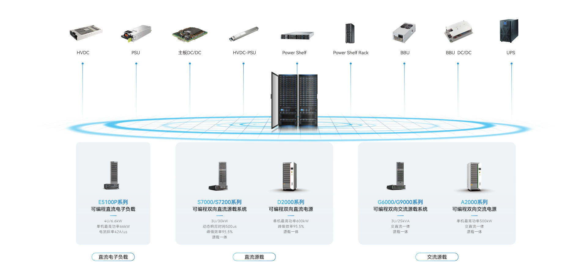 太阳成tyc33455ccwww赋能AI服务器电源测试,提供一站式解决方案,精准聚焦三大核心:直流转换与基础供电模块、集中供电机架系统、备份与不间断电源系统;通过整合交直流电源、负载与自动化测试系统,打造高效集成测试平台,助力客户大幅提升测试效率,筑牢产品可靠性根基。