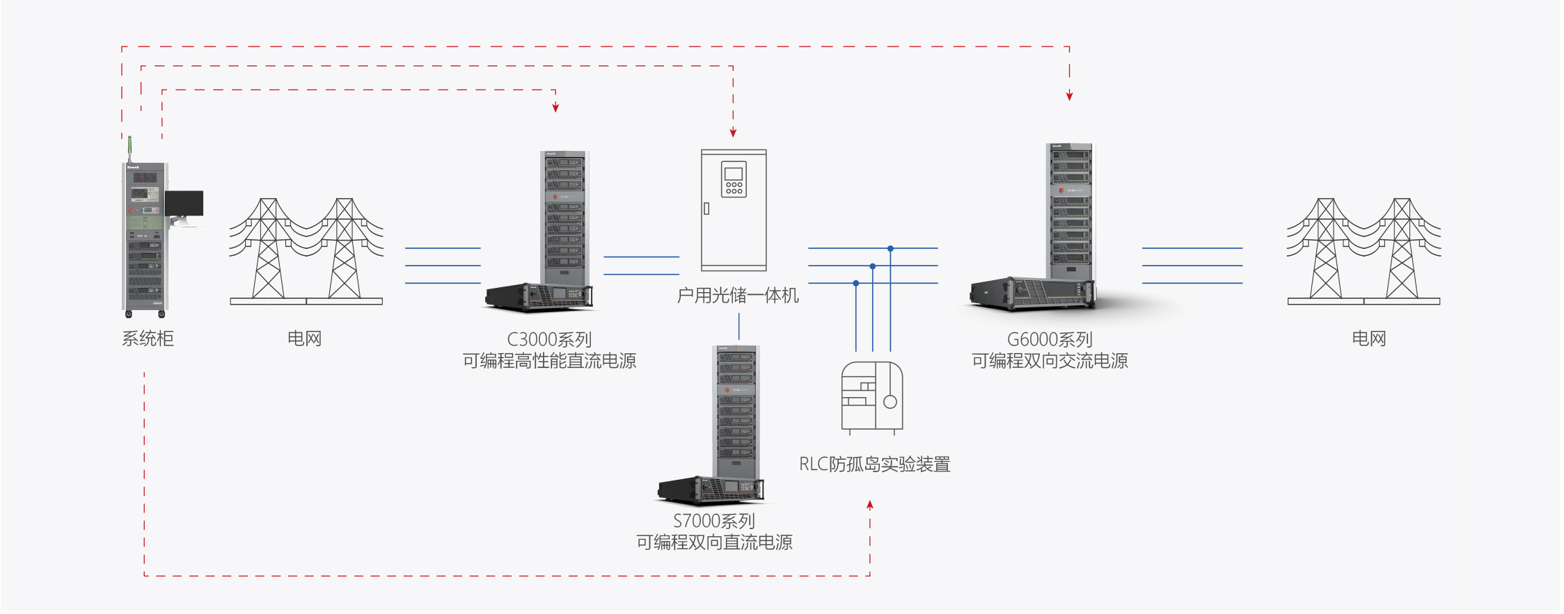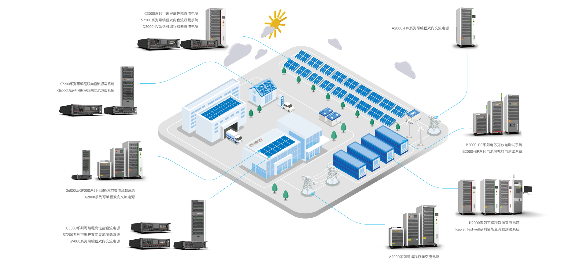 太阳成tyc33455ccwww光伏测试解决方案支持逆变器发电及并网全天候全场景模拟,匹配大功率/超高压的测试电源模拟大型光伏方阵及电压级别较高的电网端,为光伏客户/测试机构提供专业测试方案。