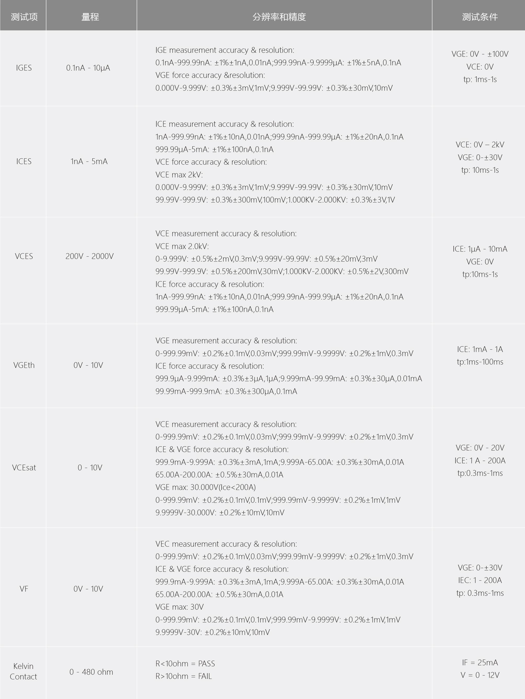 • 高压大电流测试,实现裸芯片的标称规格测试,筛选完整数据表现;