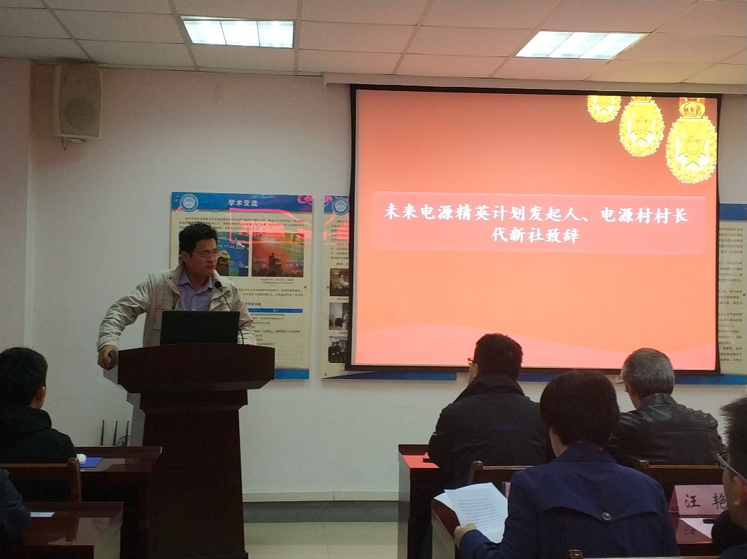 代新社在致辞中介绍了自己的求学生涯和创业征程,阐述了创建电源村以及未来电源精英计划的初衷。电源村是对电力电子及能源互联网方向进行行业跟踪和交流的民间组织,主题涉及通信、电力、新能源发电、新能源汽车等各个热点行业。代村长勉励同学们好好学习,在学习生活中把握机会,创造人生价值,在今后走出学校,走上工作岗位后,能够为未来电源精英计划增添一份力量。