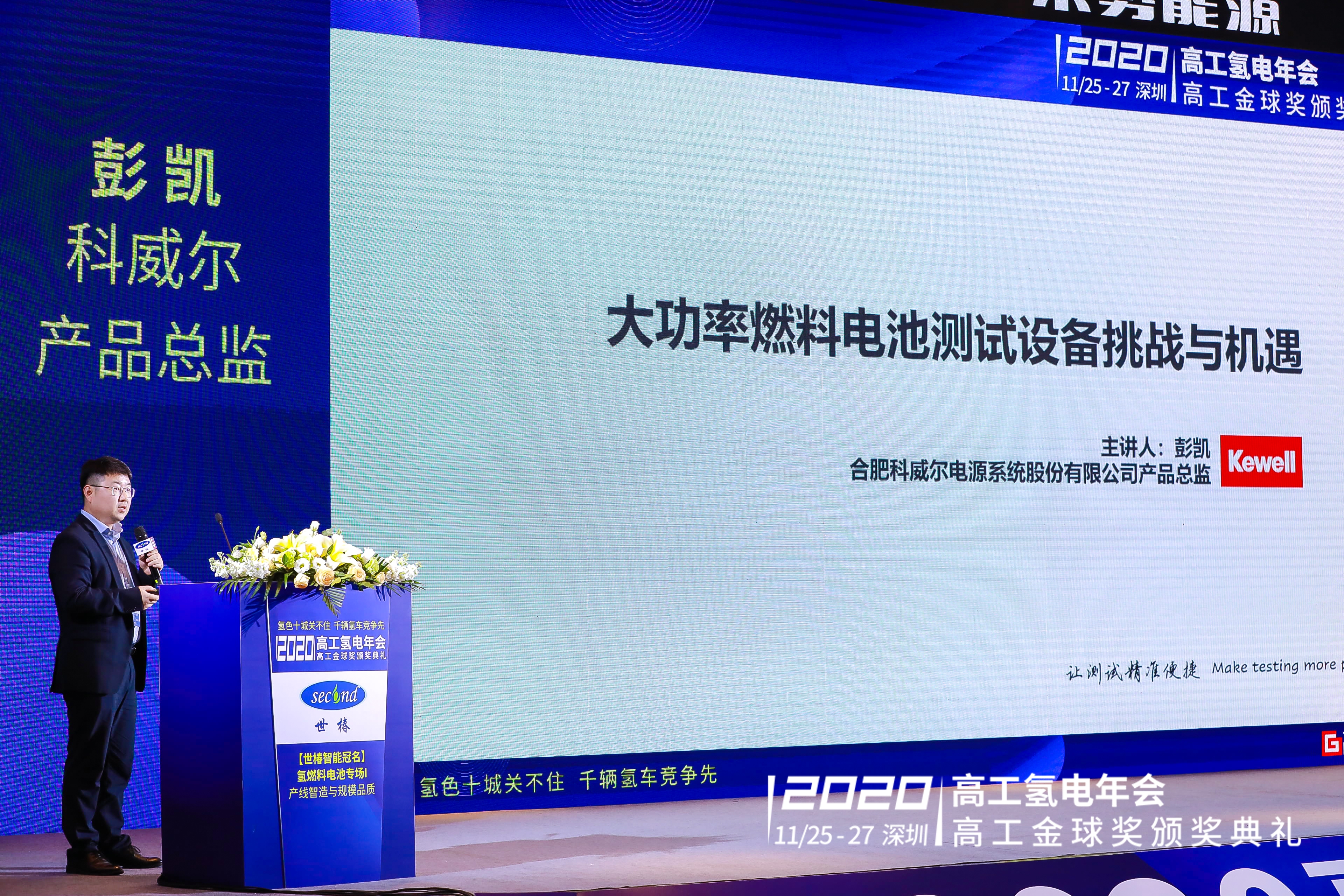 在11月26日上午氢燃料电池专场I:产线智能与规模品质,合肥太阳成tyc33455ccwww电源系统股份有限公司产品总监彭凯发表了“大功率燃料电池测试设备挑战与机遇”主题演讲。彭凯认为,要匹配大功率燃料电池电堆及发动机,测试设备需要有稳定可靠的大流量气体的加湿加温控制;精准快速的大流量范围气体的背压控制和快速稳定的大功率散热控制,并且加强安全可靠性设计,提升操作的便捷性。